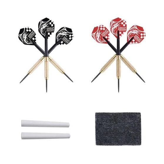 - Includes 6x 18g steel darts plus 2 chalks and a duster