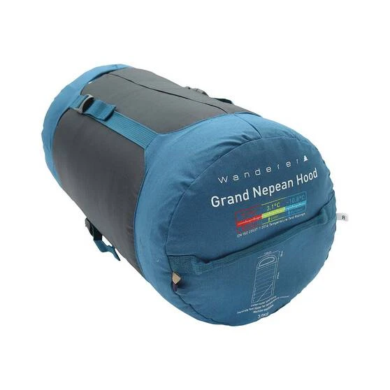 The Wanderer Grand Nepean Cotton Hooded Sleeping Bag with its cotton shell and lining is the perfect choice for camping comfort in warmer climates. With a comfort level rating of +7.7C, this lightweight cotton, hooded sleeping bag has been manufactured with quality SBS #5 zips for durability and the 200gsm hollow core synthetic plush fill will keep you cosy all night long.